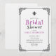 Um convite de chá de noiva preto e branco sofisticado, apresentando tipografia serifada atemporal e moldura ornamental elegante. Projetado com espaço branco equilibrado e letras graciosas, este layout clássico evoca sofisticação vintage, mantendo o foco no nome da noiva. Perfeito para celebrações formais, tradicionais ou sofisticadas com estética minimalista e estilo duradouro.