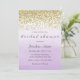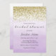 Convite de chá de noiva com design de brilho dourado falso e fundo de aquarela roxa ombre.