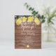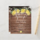 Com limões, folhagens e luzes de corda em um fundo de madeira rústica, este convite de chá de noiva divertido e econômico pode ser personalizado com as informações do seu evento especial. Criado por Thisisnotme©