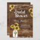 Convite de Chá de Noiva Rústico com Girassol e madeira antiga rústica.
