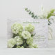 foto de hortênsias brancas e verde-claras em um fundo com escrita à mão antiquada