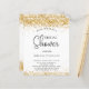 Um fundo branco elegante. Decorado com purpurina dourada falsa. Personalize e adicione um nome e detalhes da festa. O nome é escrito com uma fonte de letra manuscrita