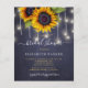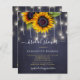Modelo de convite de chá de noiva rústico e sofisticado em um quadro-negro azul-marinho com luzes de corda, apresentando um buquê de girassóis amarelos e dourados e caligrafia falsa elegante e sofisticada em ouro.++++++++++++++ Fácil de personalizar com seus detalhes! +++++++++++ O convite é adequado para festas de chá de noiva ao ar livre no verão ou outono, em jardins, casas de fazenda, quintais rústicos, brunch ou almoços. ++++++++++ POR FAVOR, LEIA ISSO ANTES DE COMPRAR! Este é um cartão de casamento acessível impresso em uma folha de papel (cada folha tem um cartão). ++++ Para obter a melhor relação preço-qualidade, nosso conselho é escolher o tipo de papel Semi-Brilho (é grosso o suficiente para ser usado em papelaria) ++++ Se você precisar de envelopes, escolha a OPÇÃO DE ENVELOPE. +++ Verifique todas as informações e ortografia do seu texto porque você receberá exatamente o que vê - ninguém mais verificará nada antes da impressão. ++++ Este cartão é projetado para o tamanho 4,5" x 5,6". No caso de você escolher outro tamanho do cartão e o texto ultrapassar a