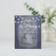 Convite de chá de noiva rústico com tema de país das maravilhas de inverno em modelo de convite acessível e elegante em fundo de madeira de celeiro azul-marinho escuro, apresentando um grande jarro de Mason com renas, árvores de pinheiro e cordões de luzes cintilantes brancas. +++++++++++++ Personalize com seus detalhes! +++++++++++ O convite é adequado para festas de chá de noiva com tema de noite de inverno / montanhas / campo rústico / brunch / almoço. ++++++++++ POR FAVOR, LEIA ISSO ANTES DE COMPRAR! Este é um cartão de casamento acessível impresso em uma folha de papel (cada folha tem um cartão). ++++ Para a melhor relação preço-qualidade, nosso conselho é escolher o tipo de papel Semi-Brilho (é grosso o suficiente para ser usado para papelaria) ++++ Se precisar de envelopes, escolha a OPÇÃO DE ENVELOPE. +++ Verifique todas as informações e ortografia do seu texto porque você receberá exatamente o que vê - ninguém mais verificará nada antes da impressão. ++++ Este cartão é projetado para o tamanho 4,5" x 5,6". No caso de escolher outro tamanho do cartão e o texto ultrapassar