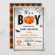 O convite para chá de fraldas do tema de abóbora do Dia das Bruxas com designs alegres.