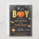 O convite para chá de fraldas do tema de abóbora do Dia das Bruxas com designs alegres.