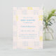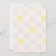 Pontinhos formam quadrados em um padrão de xadrez. Rosa pastel, azul, amarelo e branco. O verso do cartão tem o mesmo padrão.