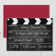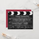 Convite de clapperboard de festa de formatura preto e vermelho pronto para ser personalizado de acordo com suas especificações.