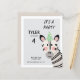 Convite de aniversário de zebra preta e branca moderna fofa com chapéu de festa dentro do orçamento.