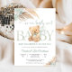 Celebre com estilo com este adorável convite de chá de bebê "Mal Podemos Esperar" com flores pastéis suaves e um doce design de ursinho de pelúcia. Perfeito para homenagear os futuros pais, este cartão elegante combina charme caprichoso com tipografia moderna. Personalize com os detalhes do seu evento para criar um souvenir memorável. Ideal para chás de bebê de menina, este convite adiciona calor e alegria à sua celebração.