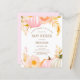 Convite de chá de bebê rosa com abóboras, flores e folhagens. Personalize com as informações detalhadas. Use a ferramenta Editar Design para alterar o tipo/tamanho da fonte e/ou cor.