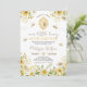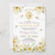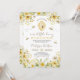 Celebre a chegada de uma nova vida com este convite "A Pequena Abelha está a Caminho". Com destaque para uma colmeia de abelhas em estilo vintage em aquarela, abelhas realistas e um jardim exuberante de margaridas brancas e girassóis. Este design botânico elegante é perfeito para uma celebração sofisticada para a futura mamãe. Personalize todo o texto para convidar familiares e amigos para um chá de bebê temático de jardim doce e alegre que eles vão amar.