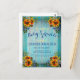 Celebre o seu novo bebê com amigos e familiares com estes cartões-postais de convite de chá de bebê rústico azul e girassol amarelo. Este design apresenta madeira de celeiro azul e girassóis com detalhes em azul escuro. Personalize o texto e a fonte ao seu gosto e combine com outros produtos desta coleção.