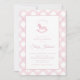 Celebre sua bebê com este convite de chá de bebê em xadrez rosa clássico que apresenta um doce cavalinho de pau em aquarela. Totalmente personalizável com os detalhes do seu evento, este charmoso design adiciona um toque de suavidade e tradição à sua celebração.