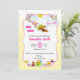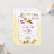 Este convite de chá de bebê adorável apresenta uma abelhinha fofa cercada por flores suaves e brinquedos divertidos, criando um design doce e alegre para celebrar uma menina. Os delicados acentos florais e detalhes caprichosos tornam-no perfeito para um chá de bebê com tema de primavera ou jardim. Personalize o texto com os detalhes do seu evento para criar um convite encantador para amigos e familiares.