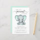 Um convite de chá de bebê neutro em relação ao gênero e acessível, com "Um Pequeno Amendoim Doce Está a Caminho" escrito em tipografia moderna cinza suave e letra estilosa, e uma aquarela verde menta pastel de um elefante bebê. Personalize o nome da mãe e os detalhes do chá em tipografia cinza simples.