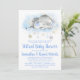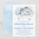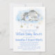 Convite de chá de bebê virtual com adorável elefante menino em um lindo fundo de nuvem com água azul e dourada. Este convite de chá de bebê online é facilmente personalizado para o seu evento, basta adicionar os seus detalhes.