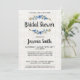 Lindos elementos florais em azul jeans acentuados com detalhes de setas boêmias e ousadas dão a este design muitas boas vibrações! Fundo de madeira rústica, tinta branca e estilo de aquarela realista trazem textura graciosa e charme. Natural e fresco para uma celebração de casamento contemporâneo.
