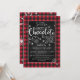 Convite de Chocolate Quente e Alegria de Natal com Flocos de Neve e Xadrez de Buffalo - Este convite apresenta Xadrez de Buffalo e Flocos de Neve com uma fonte tipográfica moderna divertida. O lado verso do convite apresenta grandes flocos de neve em xadrez de buffalo... Não pode ficar mais aconchegante do que isso! Personalize com suas próprias palavras/detalhes! Para personalização adicional: (1) Por favor, clique no botão "Personalizar" e use nossas ferramentas de design para modificar este modelo. Nem todas as obras de arte podem ser modificadas. (2) Se preferir papéis mais grossos, considere escolher o Tipo de Papel Fosco.