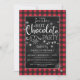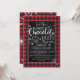 Convite de festa de Chocolate Quente com Flocos de Neve e Xadrez de Buffalo - Este convite apresenta Xadrez de Buffalo e Flocos de Neve com uma fonte tipográfica moderna e divertida. O verso do convite apresenta grandes flocos de neve em xadrez de buffalo... Não pode ficar mais aconchegante do que isso! Personalize com suas próprias palavras/detalhes! Para personalização adicional: (1) Por favor, clique no botão "Personalizar" e use nossas ferramentas de design para modificar este modelo. Nem todas as obras de arte podem ser modificadas. (2) Se preferir papéis mais grossos, considere escolher o Tipo de Papel Fosco.