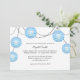 Delicadas lanternas de festa azuis definem o tom deste convite de churras de bebê e evento. Este convite é mostrado no papel básico; no entanto, eu recomendo o peso e a textura do papel de linho.