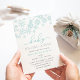 Brrr! Convites elegantes e gelados para chás de bebê de inverno apresentam uma borda superior de flocos de neve em um pálido aqua invernal ventoso, com "baby it's cold outside" em letras turquesa e cinza. Personalize com os detalhes do seu chá de bebê neutro em relação ao gênero abaixo usando os campos de modelo. Os cartões se invertem para um aqua claro sólido.