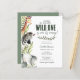 Bem-vindo ao lado selvagem com nosso convite de chá de bebê para menino "Wild One Safari Animals"! Se você está planejando um chá de bebê com tema safari para um menino, este convite é perfeito para você. Com ilustrações divertidas de animais de safari, como um adorável elefante, zebra e girafa, contra um fundo de plantas verdes rústicas e folhas de verde tropical selvagem, ele captura o espírito aventureiro da vida selvagem.