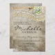 Convite de Churrasco de Bebê com Renda Rústica. Um convite de churrasco de bebê muito elegante e rústico em estilo shabby chic, apresentando diferentes flores verdes e creme com elementos metálicos nelas e ao redor delas, elementos semelhantes a pérolas adornam a parte superior e inferior e uma renda vitoriana sofisticada e um pássaro em um galho adornam este convite sobre um fundo marrom rústico. Um ótimo Convite de Churrasco de Bebê com Renda Rústica Distressed para aquele casamento rústico ou vintage e esses convites são acessíveis, mas têm uma aparência incrível!