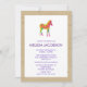 Um convite de churrasco de bebê (ou outro evento como um aniversário) com uma ilustração de uma zebra bebê. Cores neon coloridas e ousadas. O fundo tem uma textura de papel kraft.