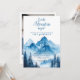 Este convite de churrasco de bebê de montanha em aquarela 'que a aventura comece' pode ser personalizado com suas informações em tipografia chic e uma foto especial no verso, juntamente com o código QR do seu registro. Criado por Thisisnotme©