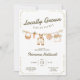 Celebre um doce feixe de alegria com este convite de chá de bebê rústico "Cultivado Localmente", perfeito para uma celebração neutra em termos de gênero. Este charmoso design apresenta ilustrações suaves em aquarela de elementos frescos da fazenda, como cenouras, ovos, macacão de bebê e um chapéu de palha, todos pendurados em um varal de corda para um clima aconchegante de campo.
