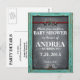 Convite de Churrasco de Bebê em Quadro Negro Rústico. Um ótimo convite de churrasco de bebê rústico vintage com um elemento de moldura turquesa. Dentro há uma textura de quadro negro que contém todos os detalhes. 3 estrelas de metal e uma faixa de couro vermelha adornam o topo da página com rebites e suportes de metal. Floreios sofisticados também podem ser encontrados neste convite. Produtos correspondentes, como convites de casamento e RSVP, também estão disponíveis.