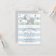Convite super fofo com elefante bebê em listras suaves azuis e brancas, uma mistura de vários estilos de fontes em cinza. Perfeito para churrasco de bebê menino. Clique para personalizar ainda mais para alterar o estilo, tamanho ou cor da fonte.