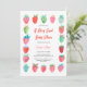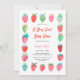 Este design doce de morango apresenta um convite de churrasco de bebê doce e moderno com morangos pintados à mão em vermelho e rosa com pequenos acentos azuis e verdes. Veja a coleção completa para mais itens correspondentes! Arte original de Caroline Bonne Müller