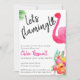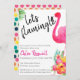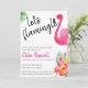 Arranjo floral tropical vibrante e flamingo aquarela com padrão de pontos de verão no fundo, convite de churrasco de bebê. Personalize o texto, estilo de fonte, cor e tamanho.