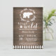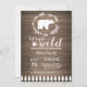 Convite de Churrasco de Bebê Urso Polar Rústico. Convite de churrasco de bebê de inverno. Convite de churrasco de bebê para menino ou menina. Vamos ficar selvagens. Convite de churrasco de bebê de férias de inverno. Fundo de madeira rústica. Celeiro retrô vintage country. Para personalização adicional, clique no botão "Personalize" e use nossa ferramenta de design para modificar este modelo.