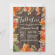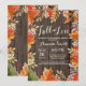 Cartão de Convite de Churrasco de Noiva de Outono Rústico com Abóbora Floral e fundo de madeira rústica. País Vintage Retro. Para personalização adicional, clique no botão "Personalize" e use nossa ferramenta de design para modificar este modelo.