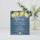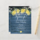 Com limões, folhagens e lindas luzes de corda em um fundo de madeira rústica azul, este convite de churrasco de noiva pode ser personalizado com as informações do seu evento especial. Criado por Thisisnotme©