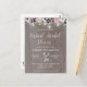 Cartão postal de convite de churrasco de noivado virtual Boho rústico em um fundo de madeira rústica com uma sequência de luzes de corda de jarro de pedreiro e flores magníficas de cor burgundy e rosa. Parte de uma coleção.