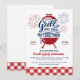 Convide amigos e familiares para uma Celebração de Quatro de Julho com este convite "Grelar e Relaxar Juntos". O design apresenta uma ilustração clássica de churrasqueira com fogos de artifício e tipografia personalizada para enfatizar o grelar e relaxar que acontecerá juntos! A parte inferior do convite inclui gingham xadrez vermelho clássico para picnic, preparando o cenário para uma celebração antiga e boa!