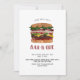 Convite de churrasco, hambúrguer gigante. Anuncie seu churrasco de aniversário com estilo com este lindo hambúrguer em aquarela, empilhado com hambúrgueres / ketchup e muito queijo! Perfeito para qualquer evento de churrasco / ao ar livre. Basta personalizar o texto com seus próprios detalhes.