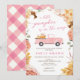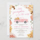 Meu modelo de convite de chá de bebê de outono Little Pumpkin é a maneira perfeita de convidar amigos e familiares para uma festa! O cartão apresenta uma moldura floral e um lindo caminhão rosa com abóbora. Você vai se apaixonar por esses convites de chá de bebê.