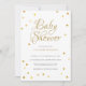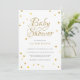 Lindos corações de amor dourados estão espalhados em torno dos seus detalhes personalizados em texto elegante neste convite de chuva de bebê chic e neutro em termos de gênero, sprinkle ou para casais. Criado por Thisisnotme©
