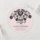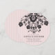 Convite floral parisiense chic moderno com fundo listrado suave. Características florais de filigrana preta com tipografia simples.