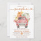 O convite apresenta um caminhão vermelho carregando abóboras. Este design é perfeito para um chá de bebê com tema de outono neutro em relação ao sexo.