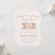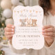 Tema de animal neutro, tons suaves de bege e sage, estilo aquarela para reuniões de chuvada de bebê. Apresenta ilustrações de elefante, coelho e urso sob uma faixa de bandeirinhas desbotada em um fundo texturizado, ideal para hospedar uma celebração calma e inspirada na natureza para uma nova chegada.