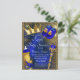 Cartão postal de convite de chuvada de bebê príncipe azul real com coisas de príncipe azuis reais e douradas em um belo fundo azul real e dourado. Este convite de chuvada de bebê do príncipe real é facilmente personalizado com os detalhes do seu evento.