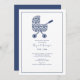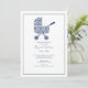Convite de Chuvada de Bebê Carrinho de Bebê em Damask. Azul marinho. Neutro.