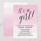 Convite de chuvada de bebê 'é uma menina' elegante com efeito ombre em aquarela rosa poeirento. Outras cores estão disponíveis.