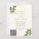 Cores e Fontes Personalizadas - Crie Seus Próprios Convites de Chuvada de Bebê Personalizados exemplo com Informações de Scan de Seu Código QR e Modelo de Convite de Chuvada de Bebê Moderno com Folhas Verdes e Brilho Dourado - pela MIGNED - Crie Seu Convite de Chuvada de Bebê Único - Adicione Seu Código QR e Texto / Nome / Informações / mais - Redimensione e mova elementos com a ferramenta de Personalização ! ou Escolha a fonte / tamanho / cor ! Transferível ! Parabéns pelo Seu Novo Bebê :)